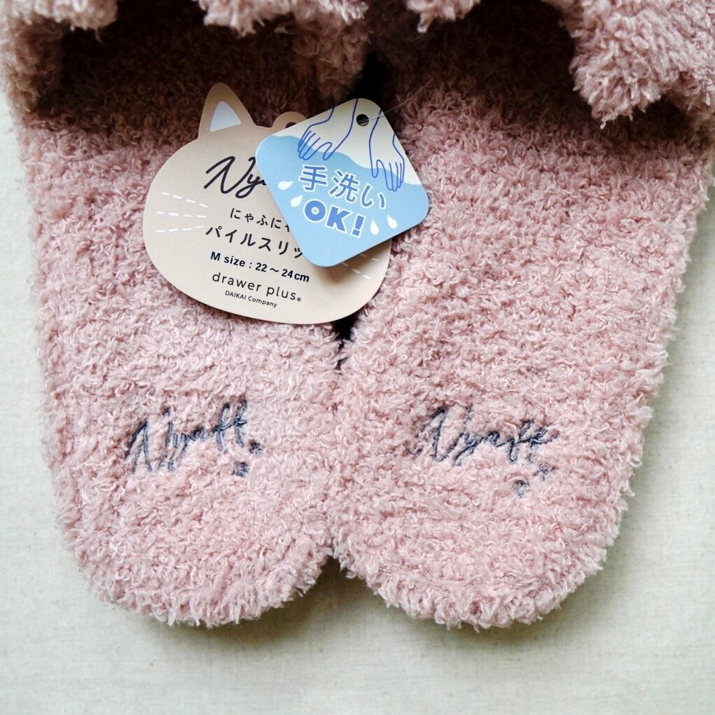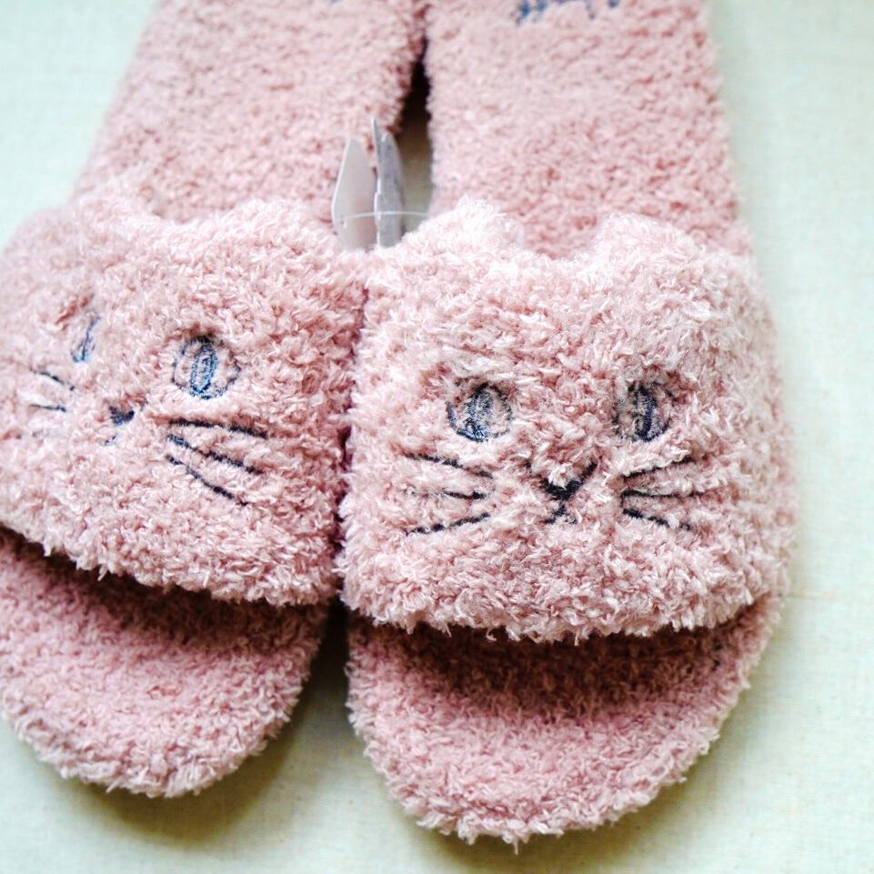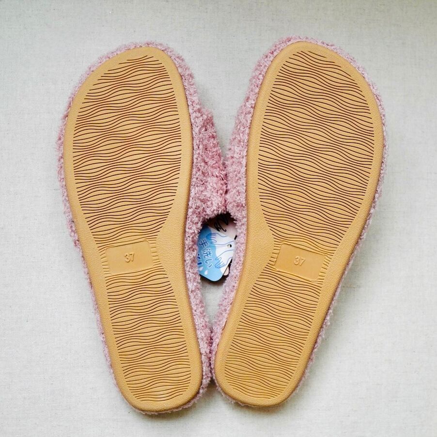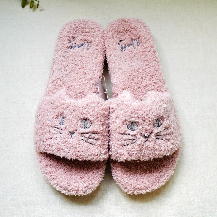 裸足で履きたくなるふわふわタオル生地のスリッパ。顔のパーツやかかとのロゴは刺繍されています。