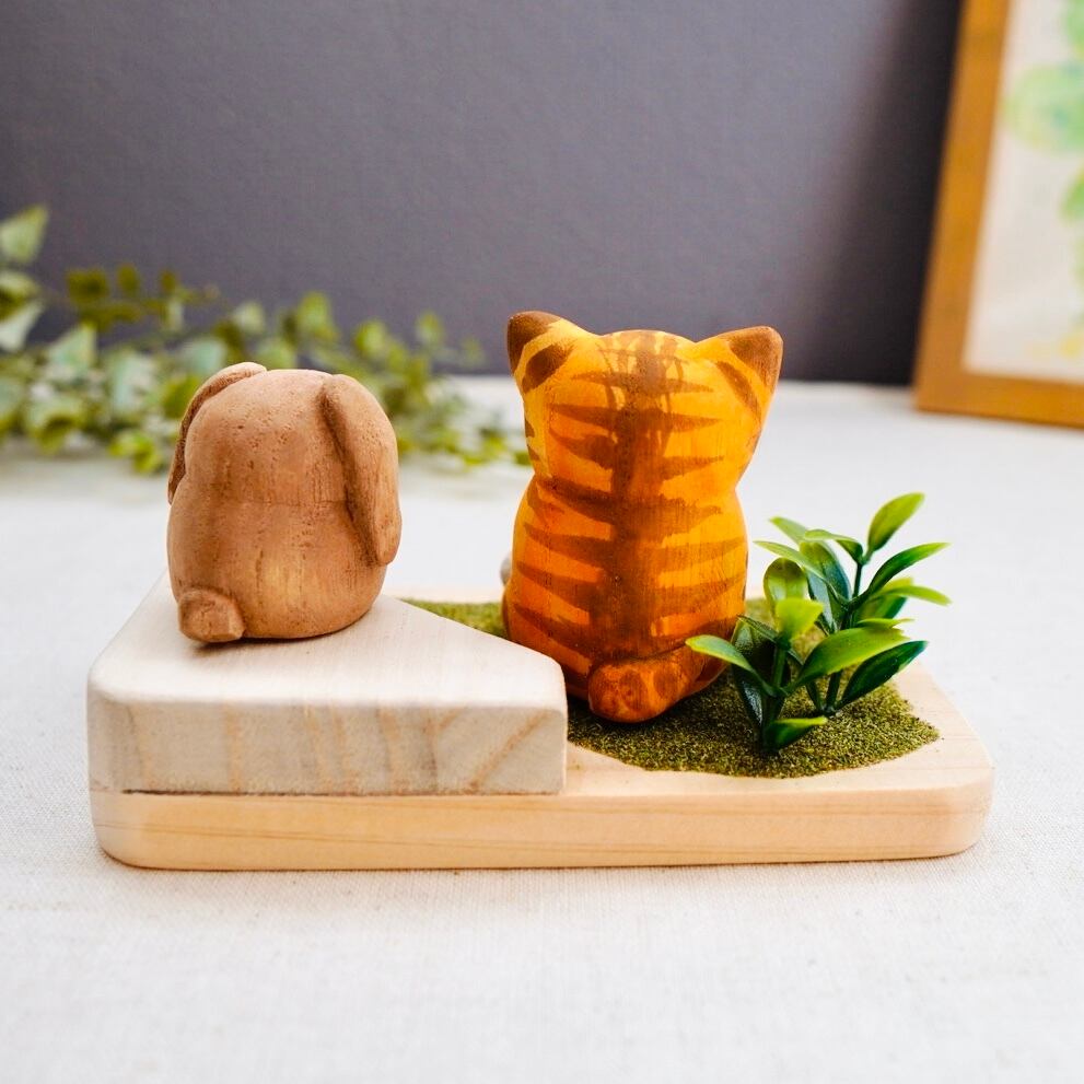 猫らしいポーズをとった木彫り猫は、手作業で彫られた顔も表情豊か。木の模様が出ていたり、触ると木の温かみも感じられます。