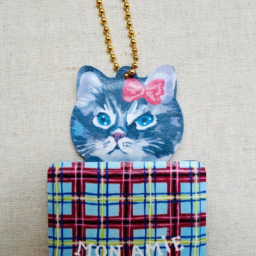 ナタリー・レテの描くキュートなネコたちのチャームです。マグネットで開閉できるミニミラー付き。スタンド仕様でも使用可能です。