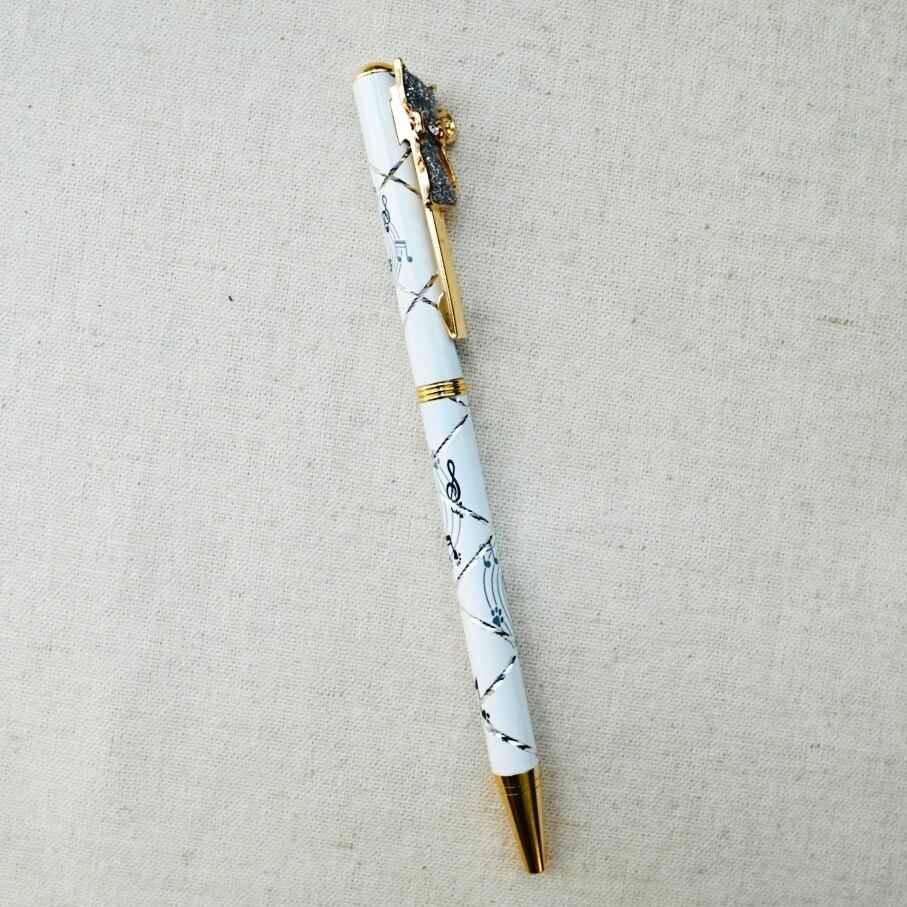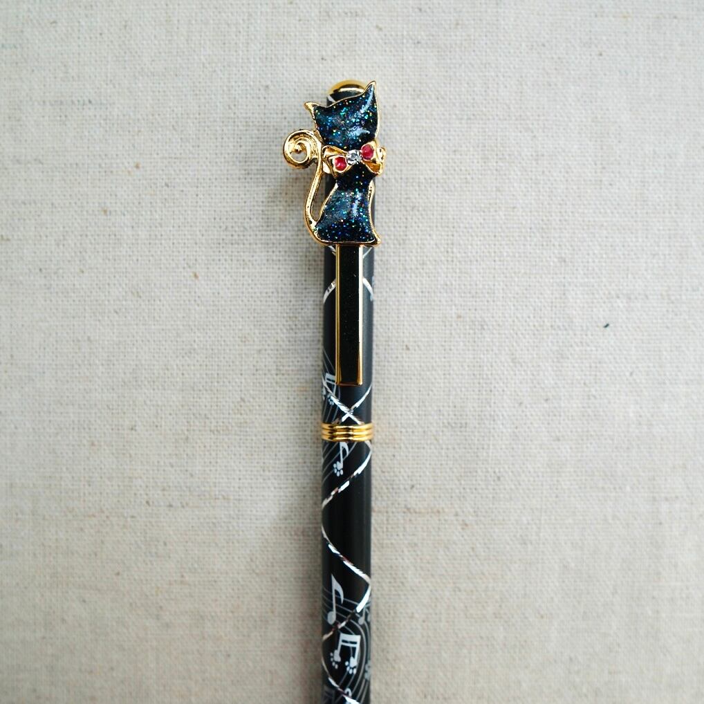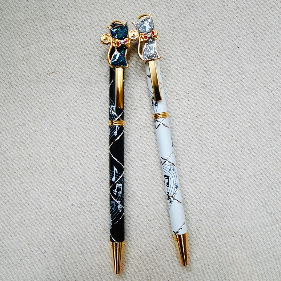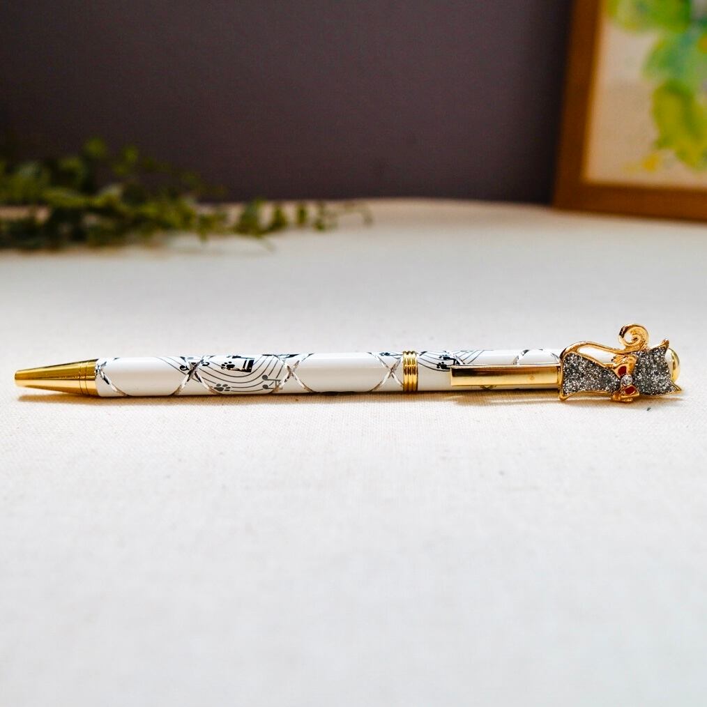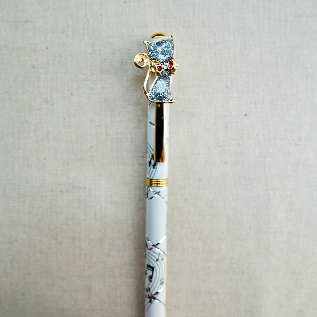 スワロフスキークリスタル 猫と音符のボールペン【GLD】