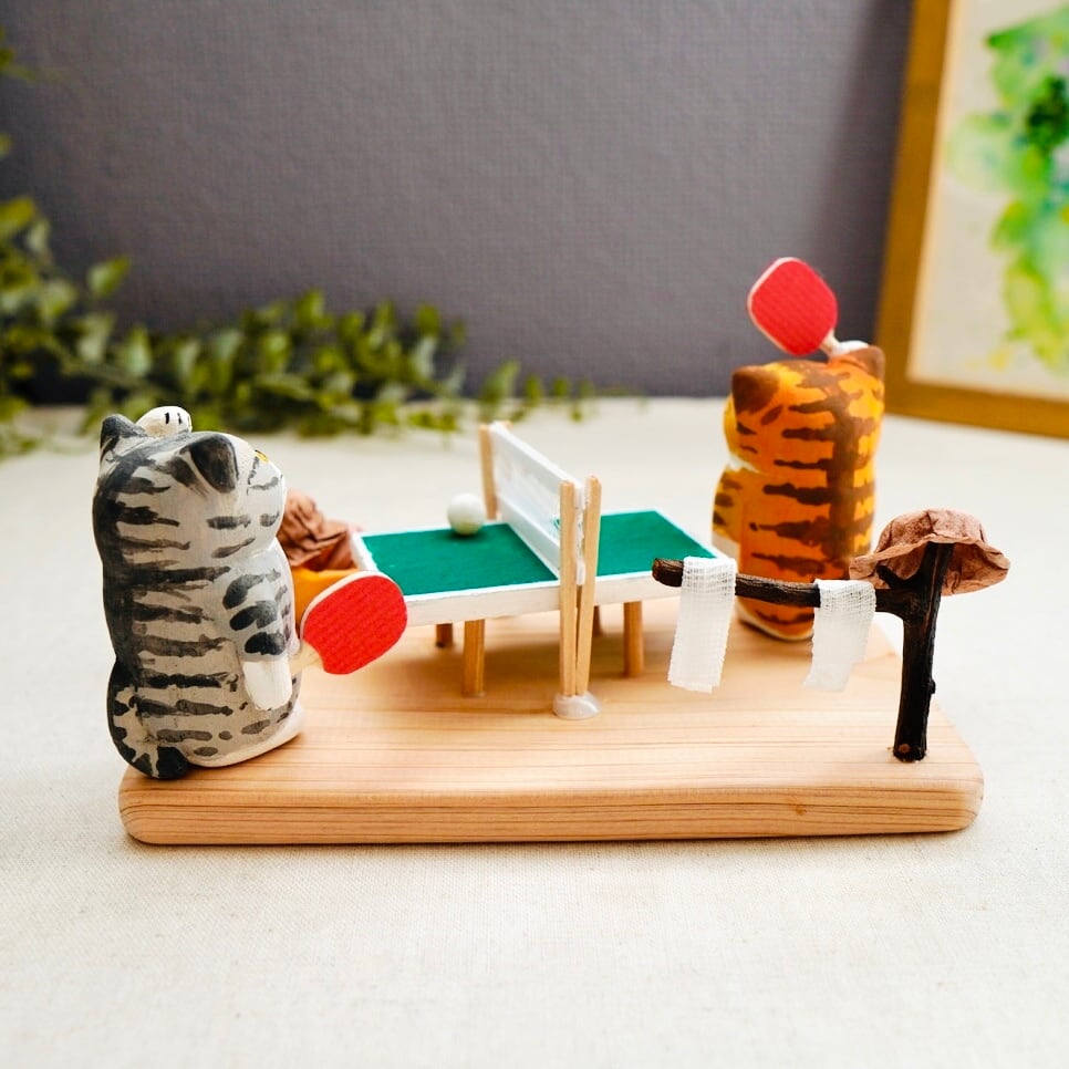 木彫り猫 283 卓球