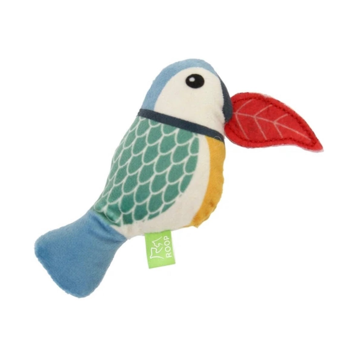 鳥型のゼンマイ式振動おもちゃ。くちばしの葉っぱを引っ張るとブルブル動いて猫ちゃんの遊び心を刺激します★