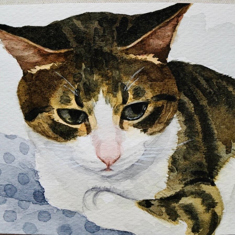 猫の絵 348 水彩画 原画 キジ白