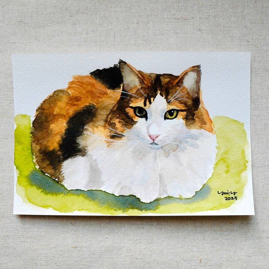 猫の絵 350 水彩画 原画 ノルウェージャンフォレストキャット