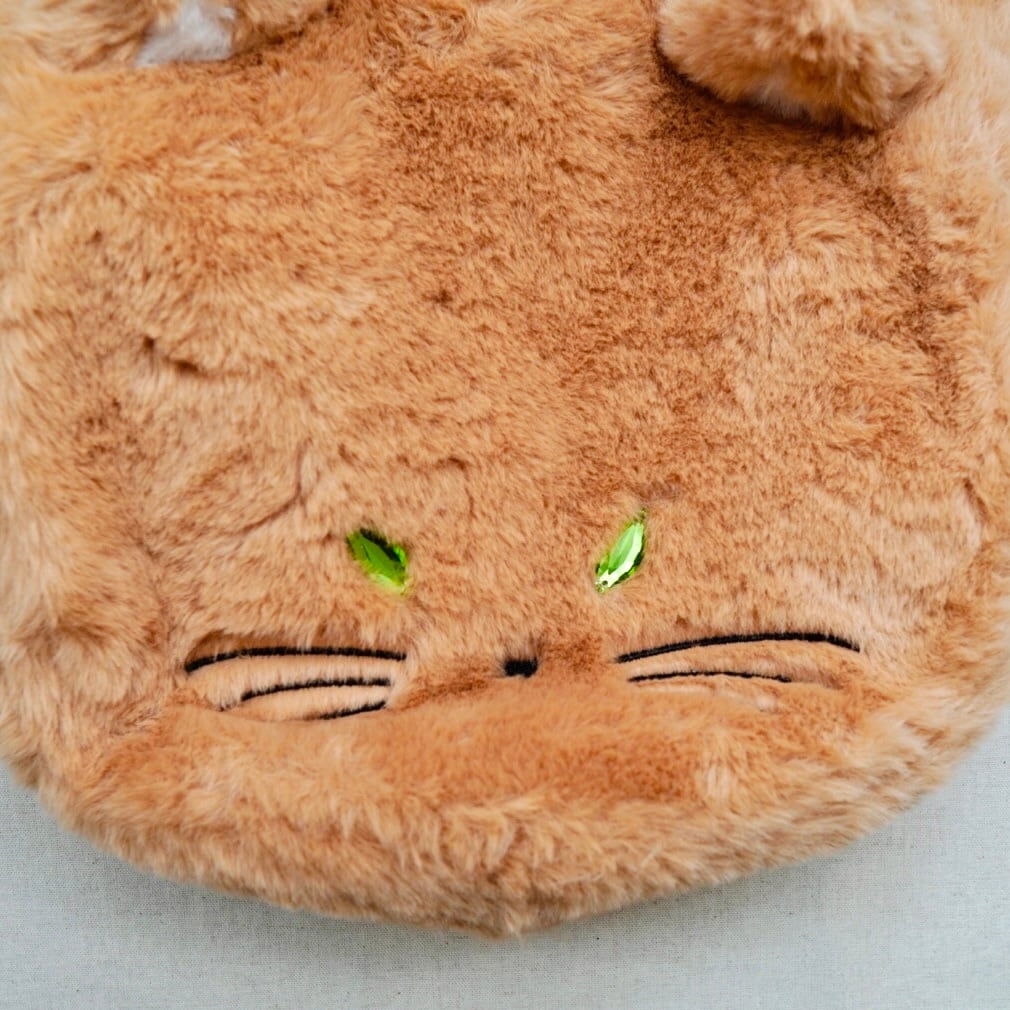秋冬コーデに取り入れたい、ふわふわショートファーを使用した猫型トートバッグ。