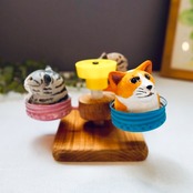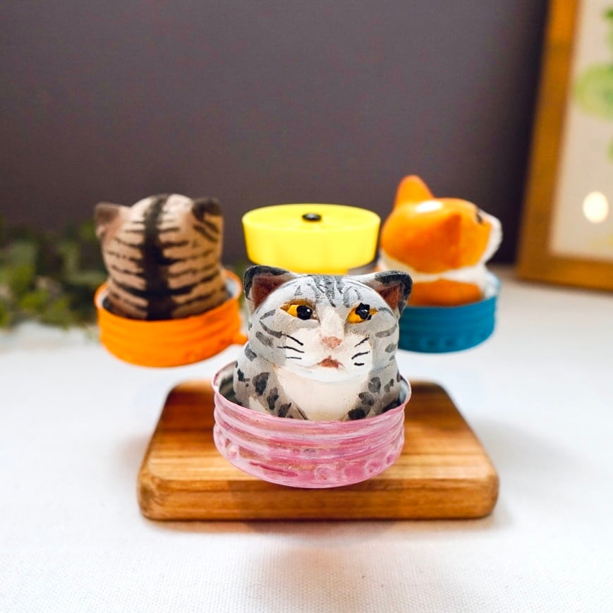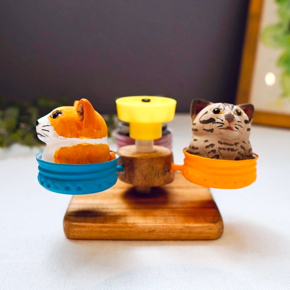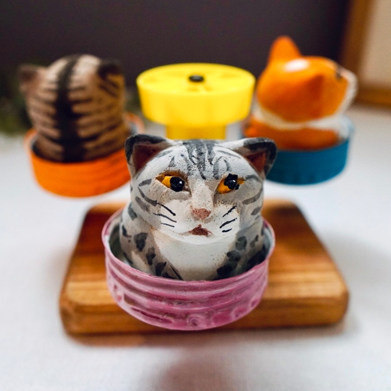 猫らしいポーズをとった木彫り猫は、手作業で彫られた顔も表情豊か。木の模様が出ていたり、触ると木の温かみも感じられます。