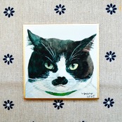 猫の絵 369 水彩画 原画 ミニ色紙 白黒猫