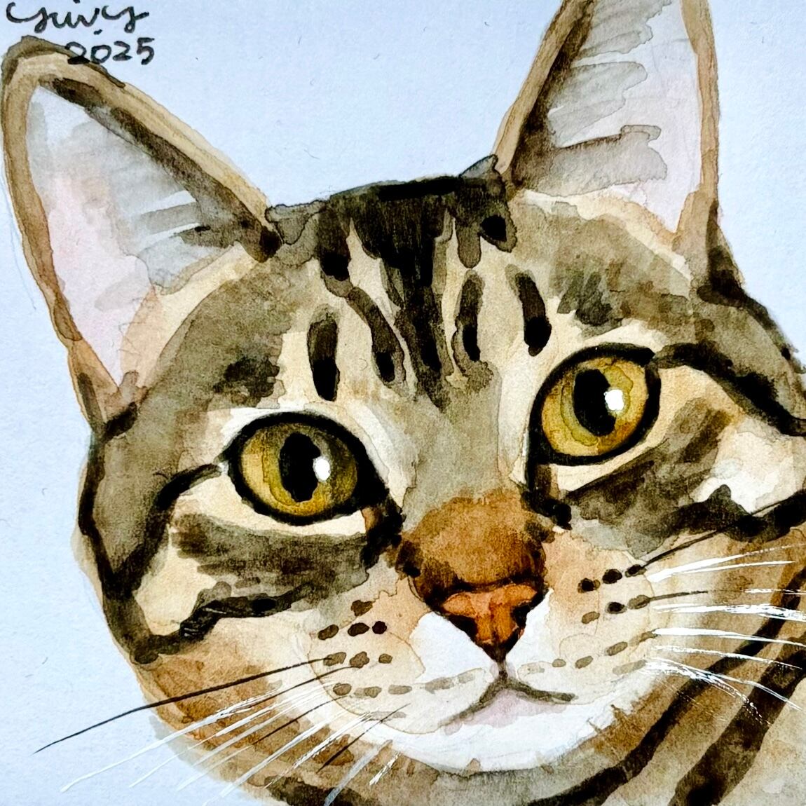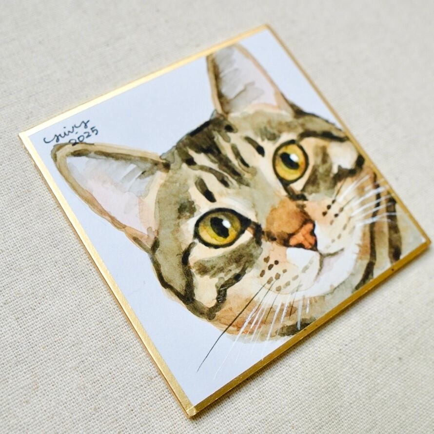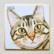 猫の絵 383 水彩画 原画 ミニ色紙 キジトラ