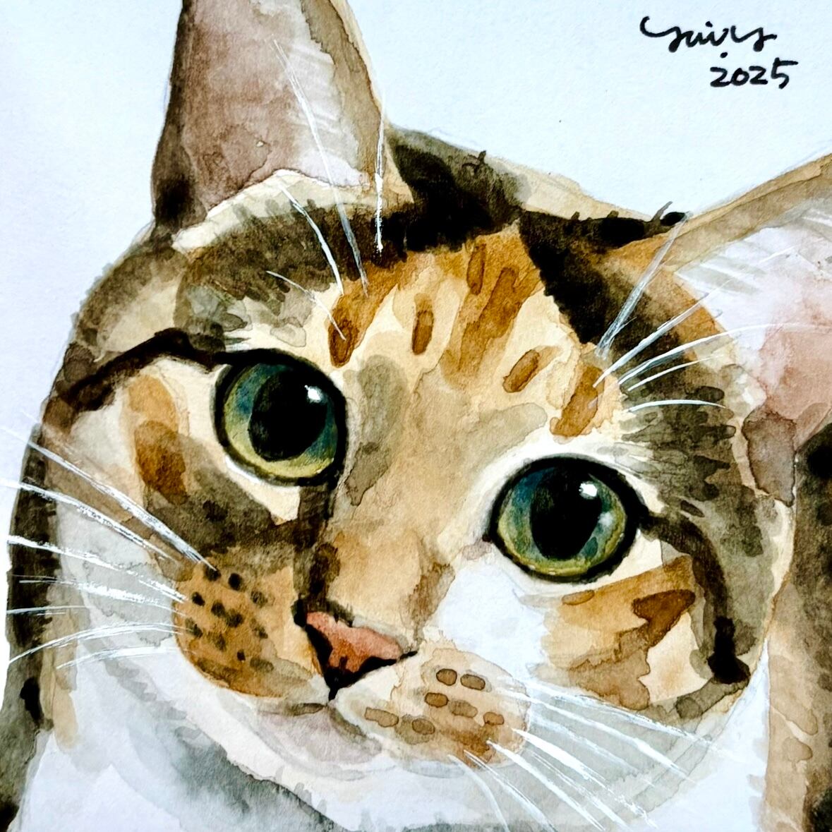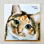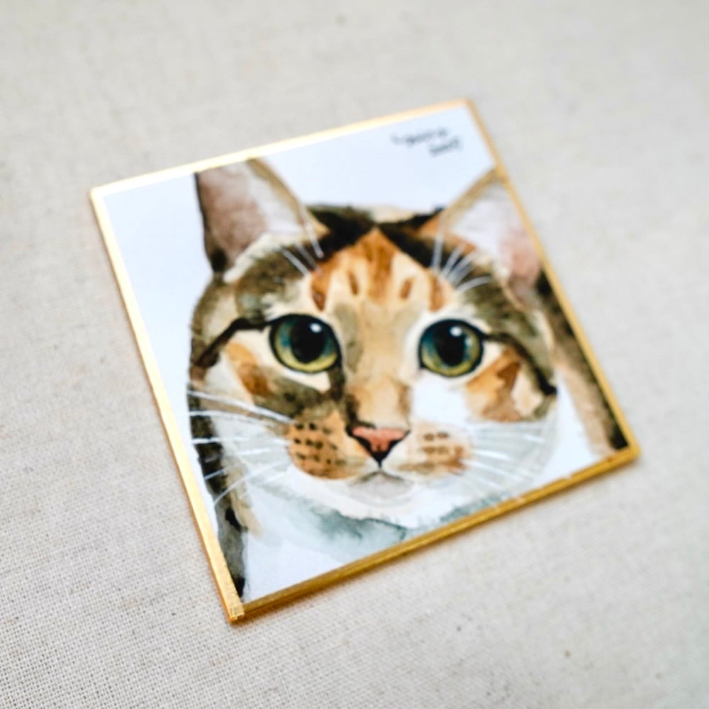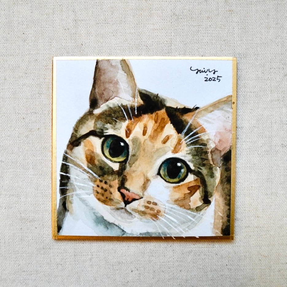 猫の絵 385 水彩画 原画 ミニ色紙 三毛猫