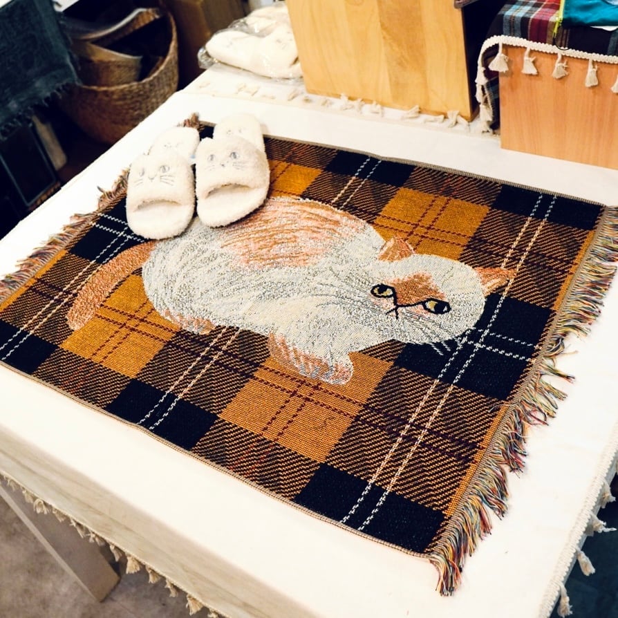 玄関やベッドサイド、チェアの足元など、ちょっとしたスペースに取り入れやすいサイズ感。フリンジ付きで、さりげないアクセントにも◎