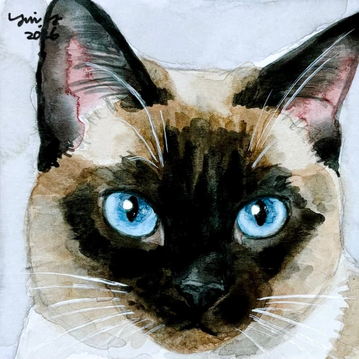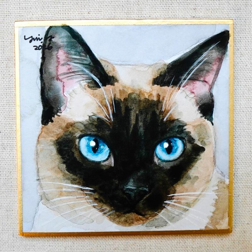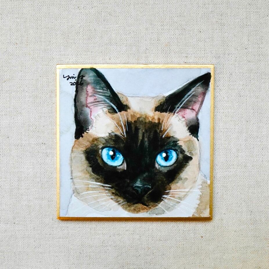 猫の絵 394 水彩画 原画 ミニ色紙 シャム猫