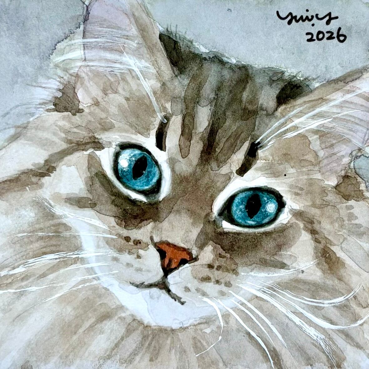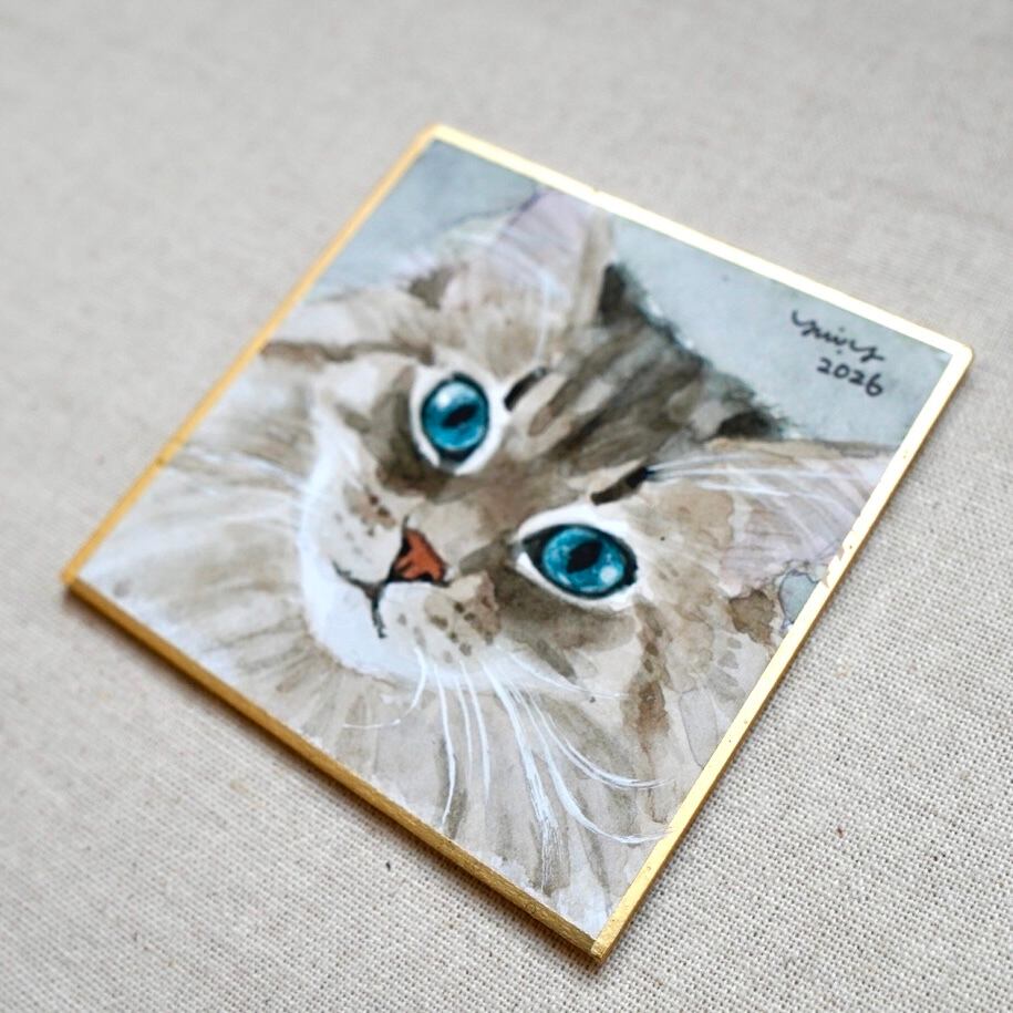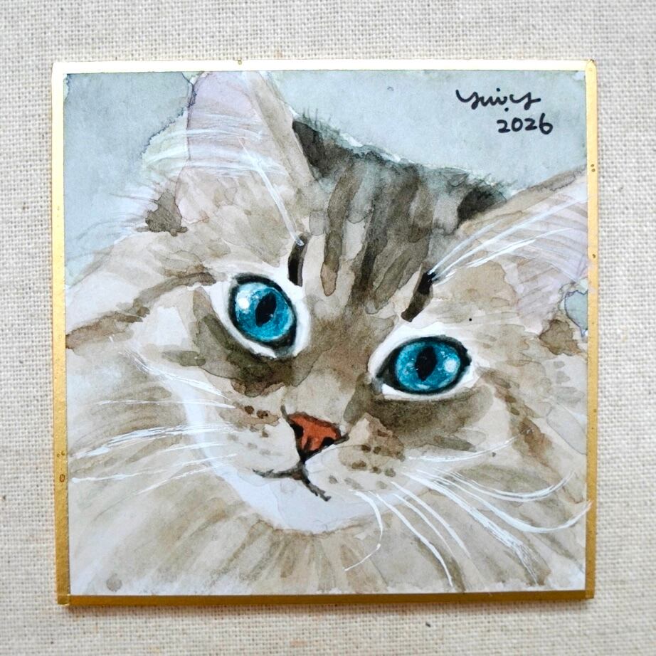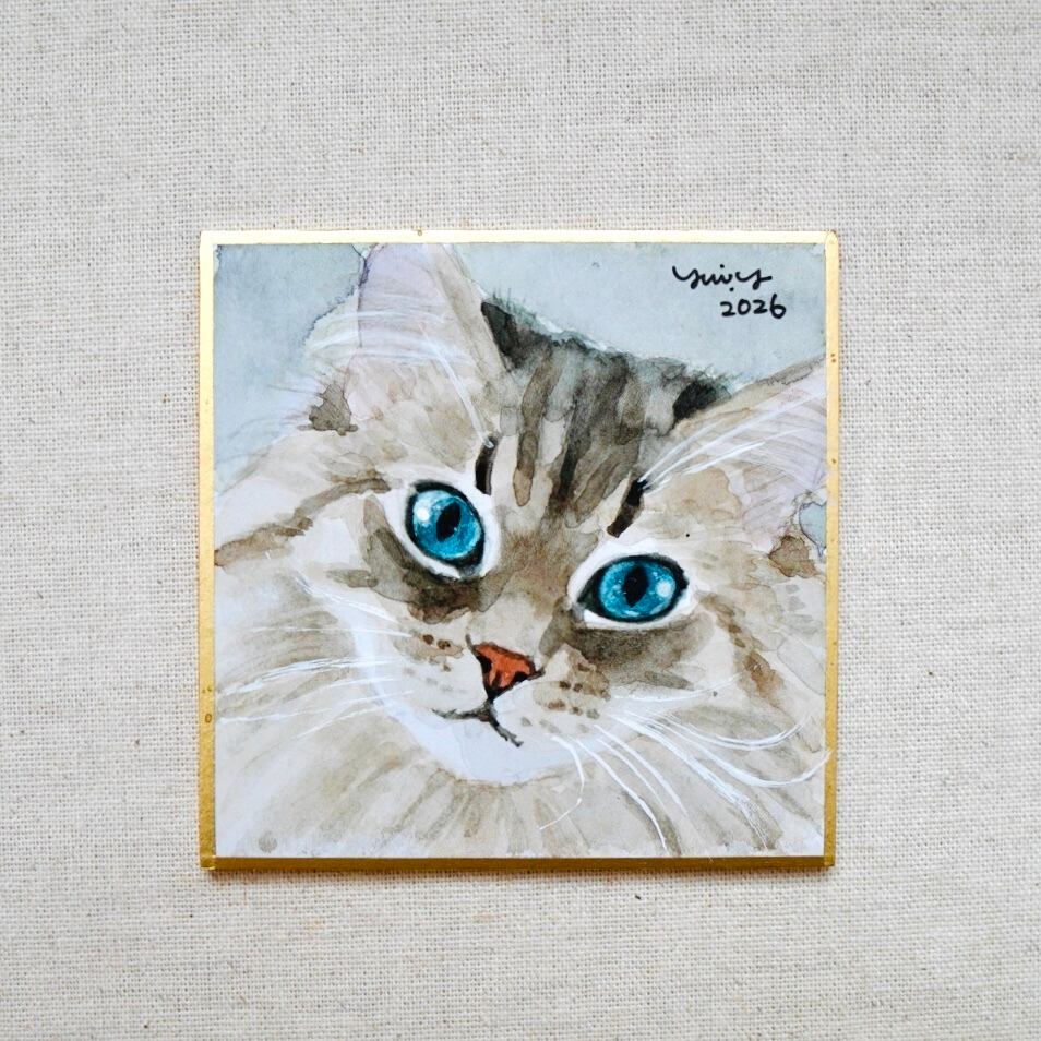 猫の絵 398 水彩画 原画 ミニ色紙 サイベリアン