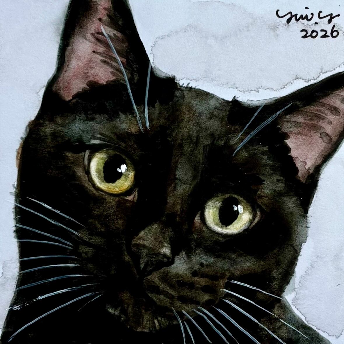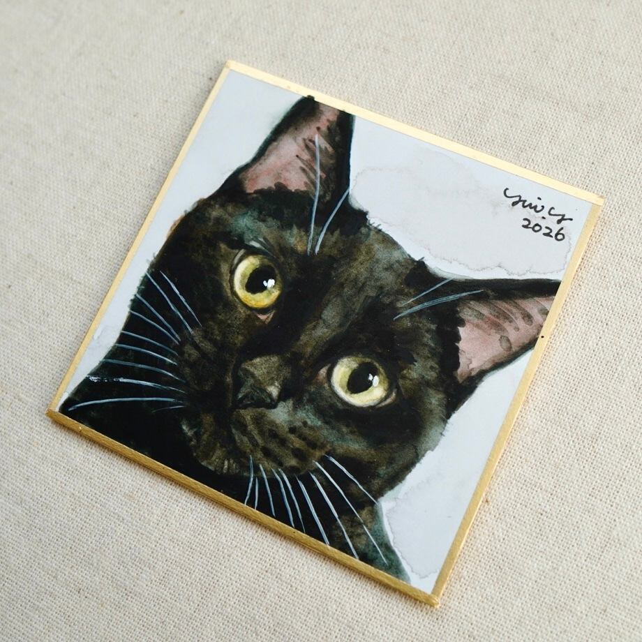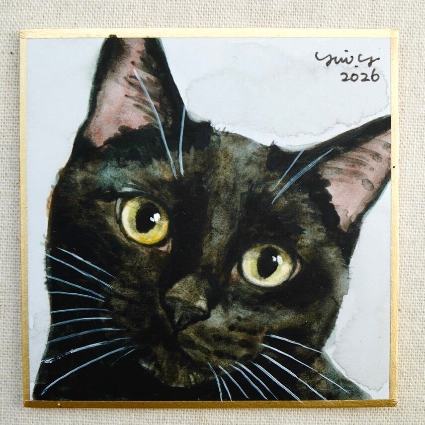 猫の絵 404 水彩画 原画 黒猫