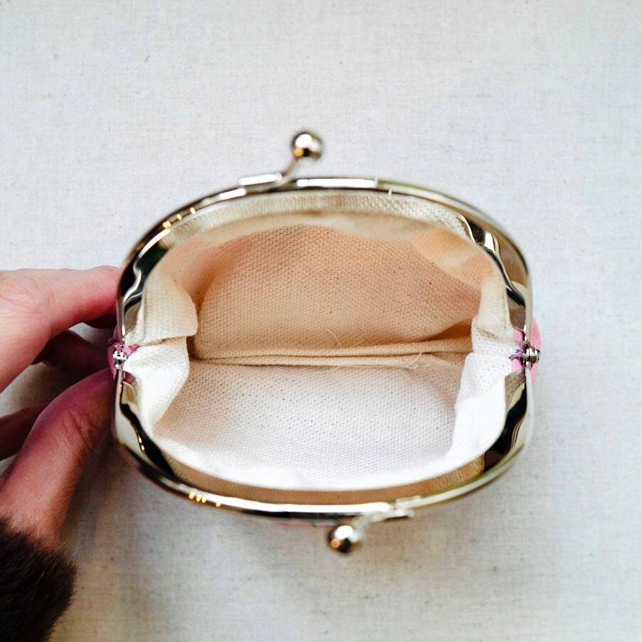 ハンドメイドのがま口ポーチ。コインケースやアクセサリー入れとしても活躍します♪
