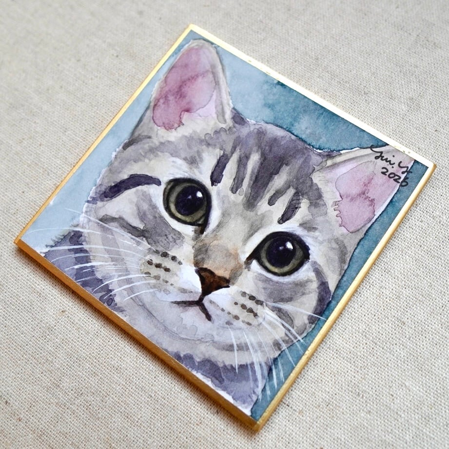 猫の絵 417 水彩画 原画 サバトラ