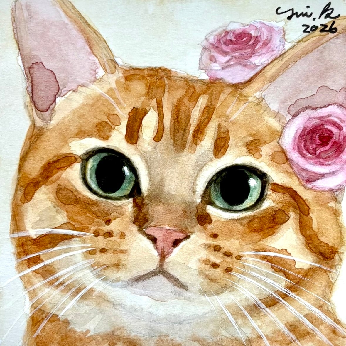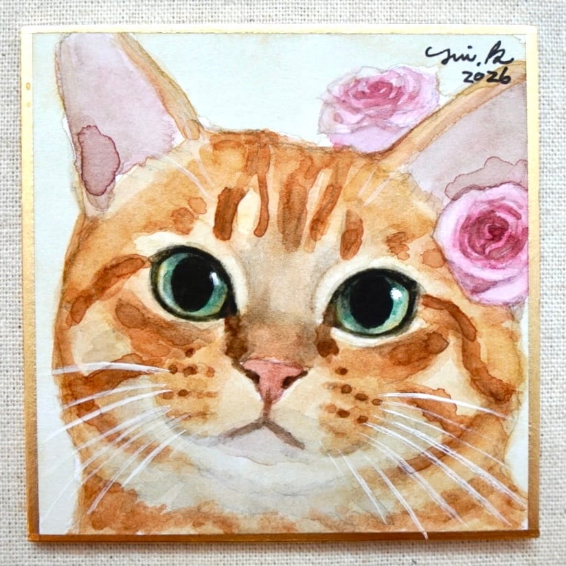 猫の絵 418 水彩画 原画 茶トラ