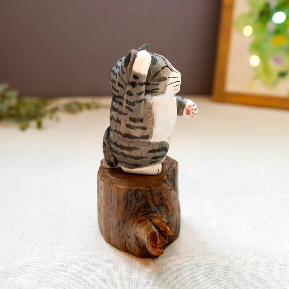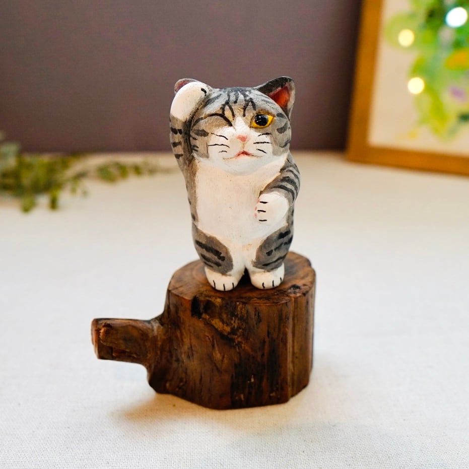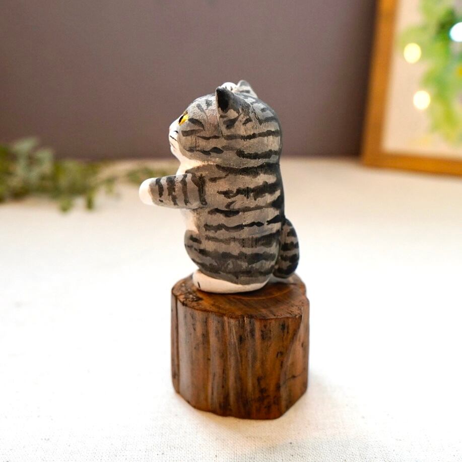 木彫り猫 316 サバ白猫 置物