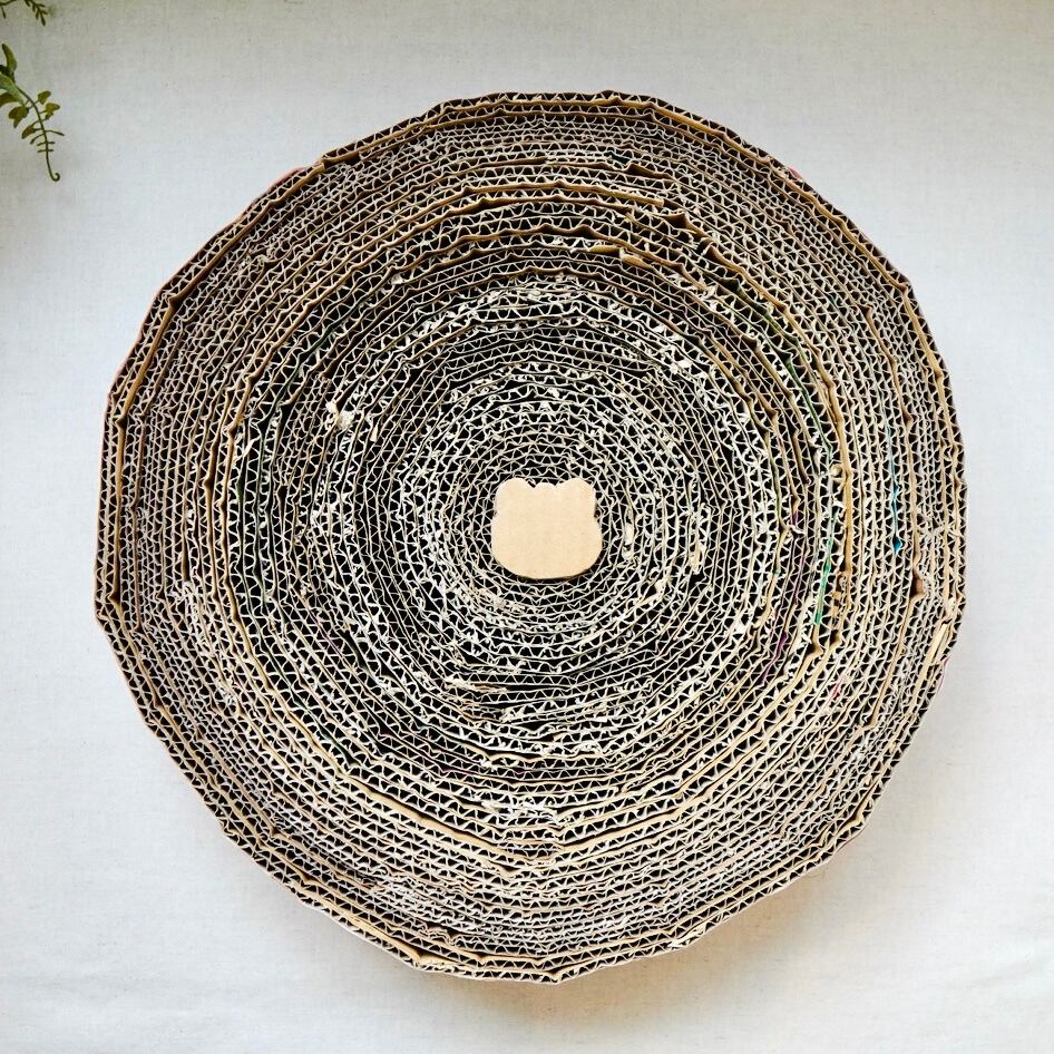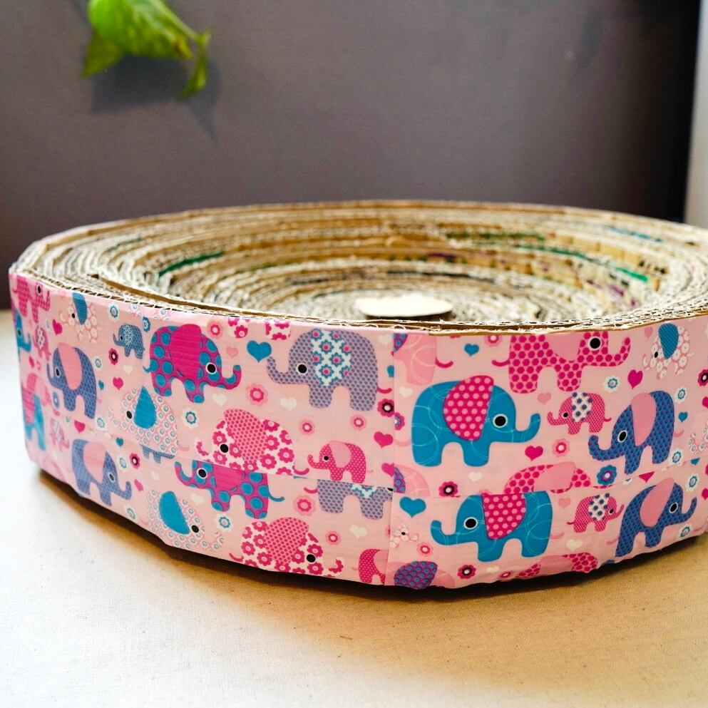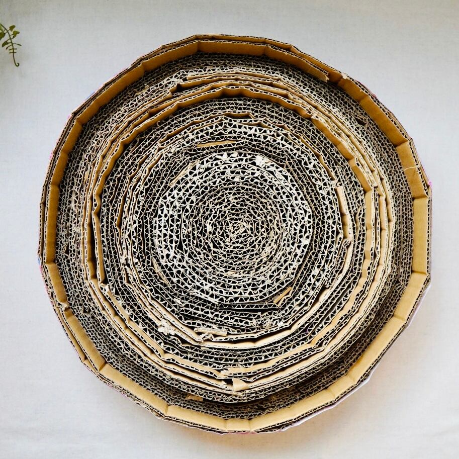 ダンボールをグルグル巻いて作っているのでとっても頑丈で、長く使える爪とぎです。
