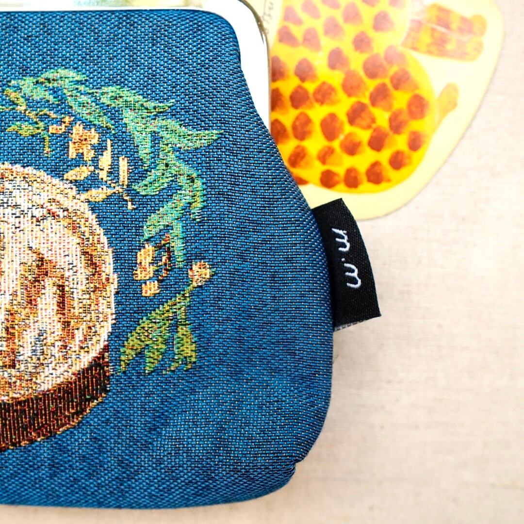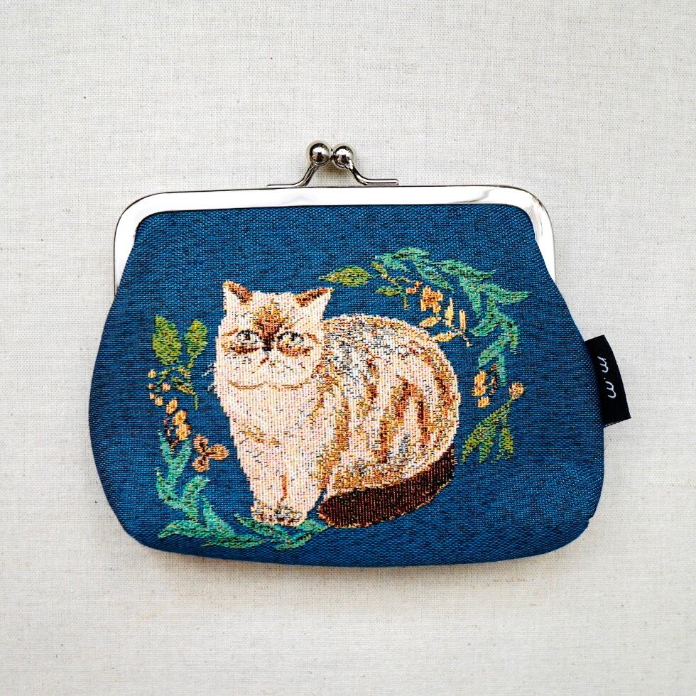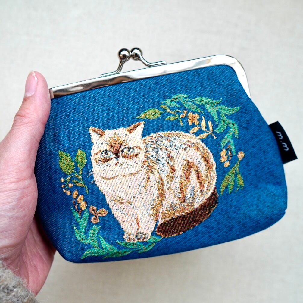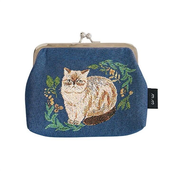 繊細な線と落ち着いた色合いで描かれた猫たちが魅力の、がま口ポーチ。