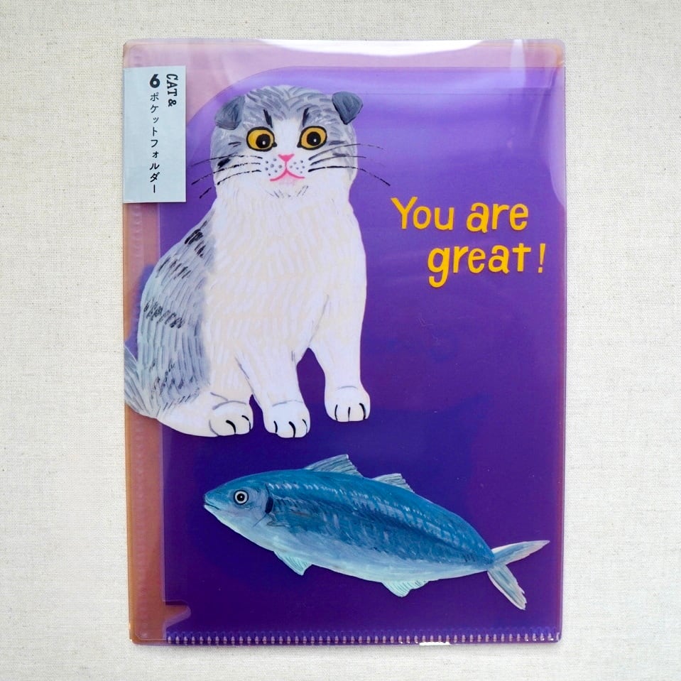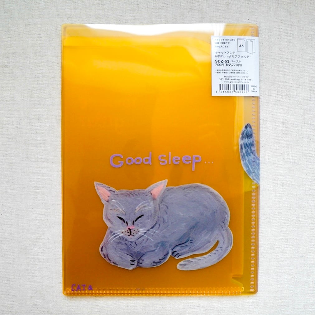 6ポケットクリアホルダー A5サイズ キャットアンド パープル そで山かほ子
