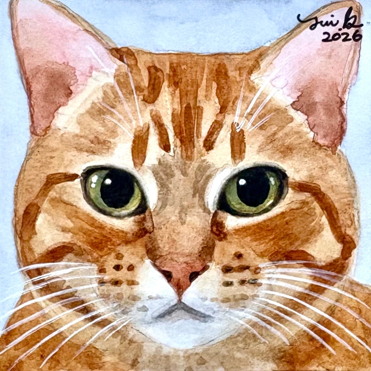 猫の絵 434 水彩画 原画 茶トラ