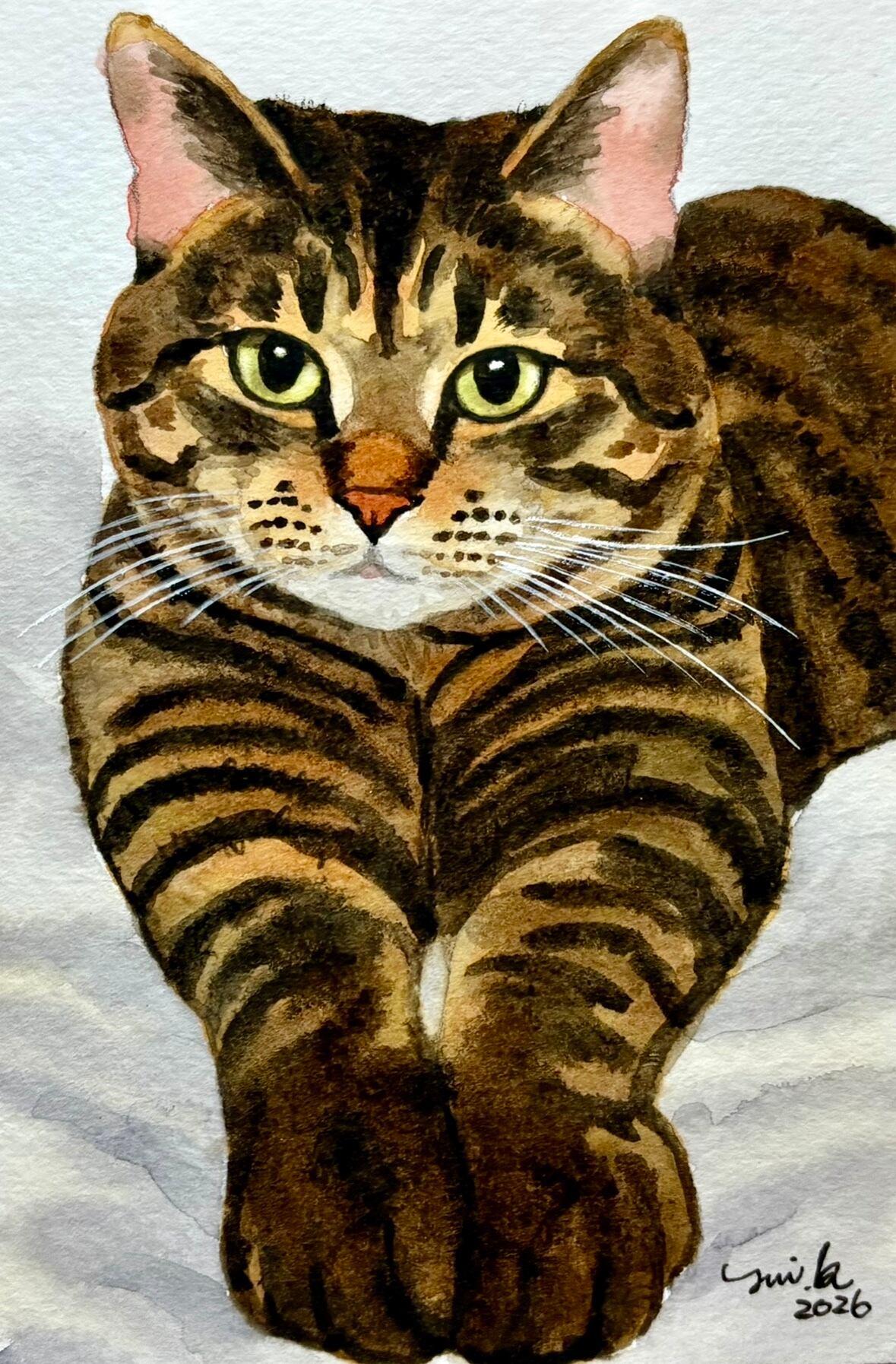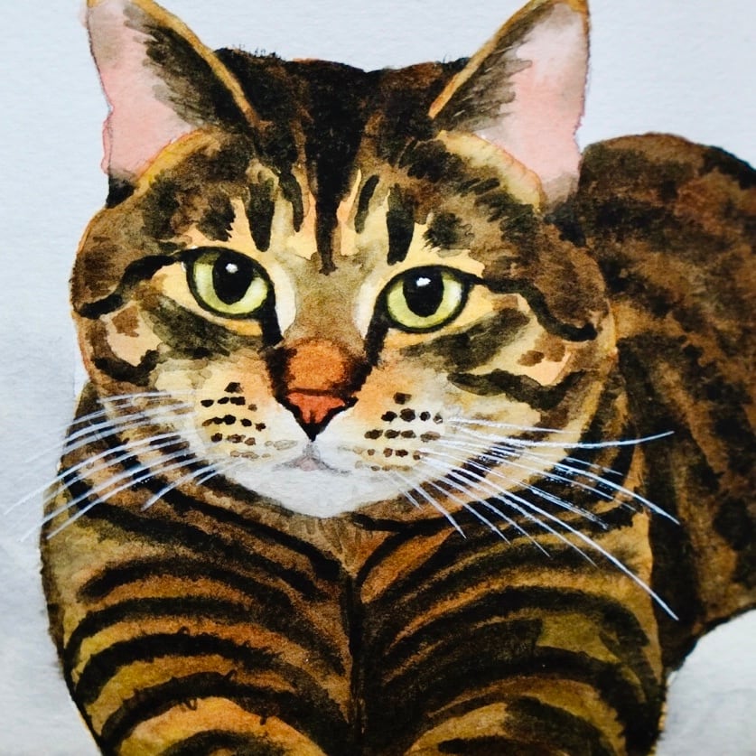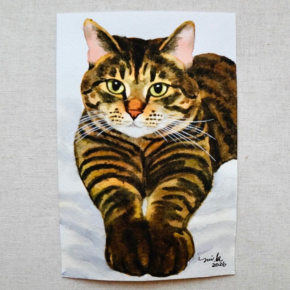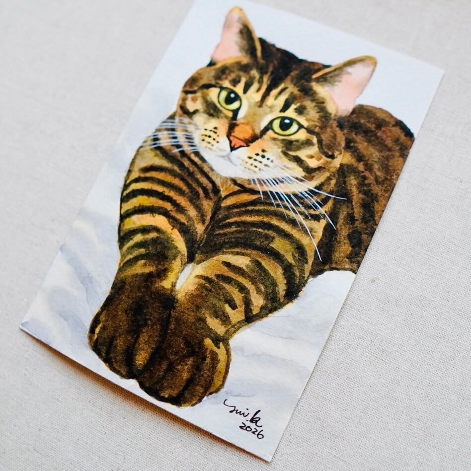 猫の絵 440 水彩画 原画 キジトラ