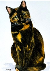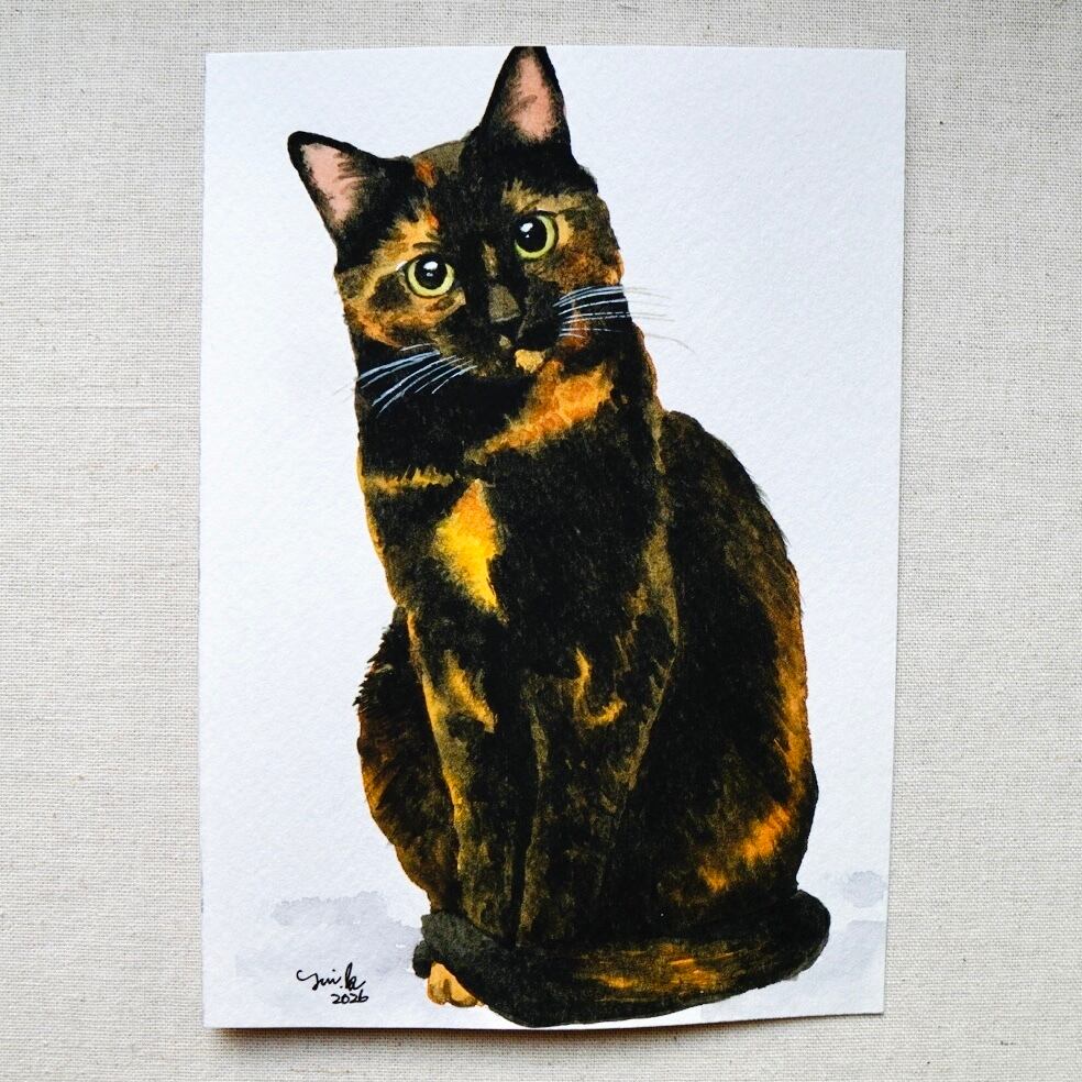 猫の絵 442 水彩画 原画 サビ猫