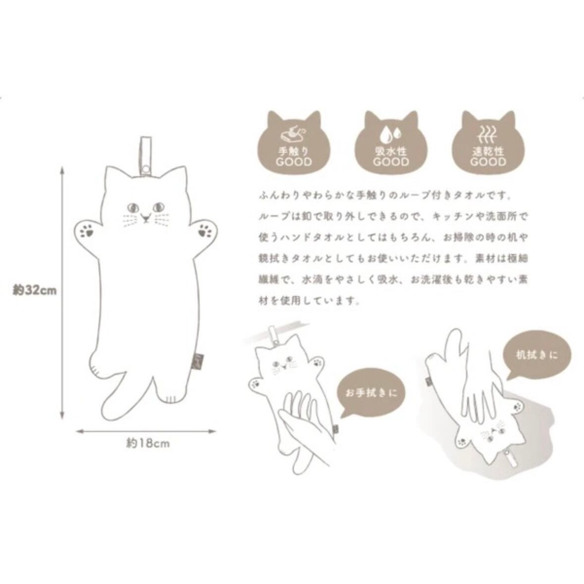 ふわふわな触り心地のネコ型タオルです。