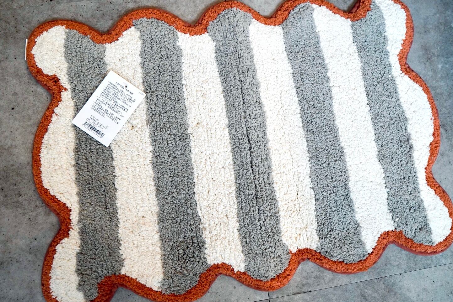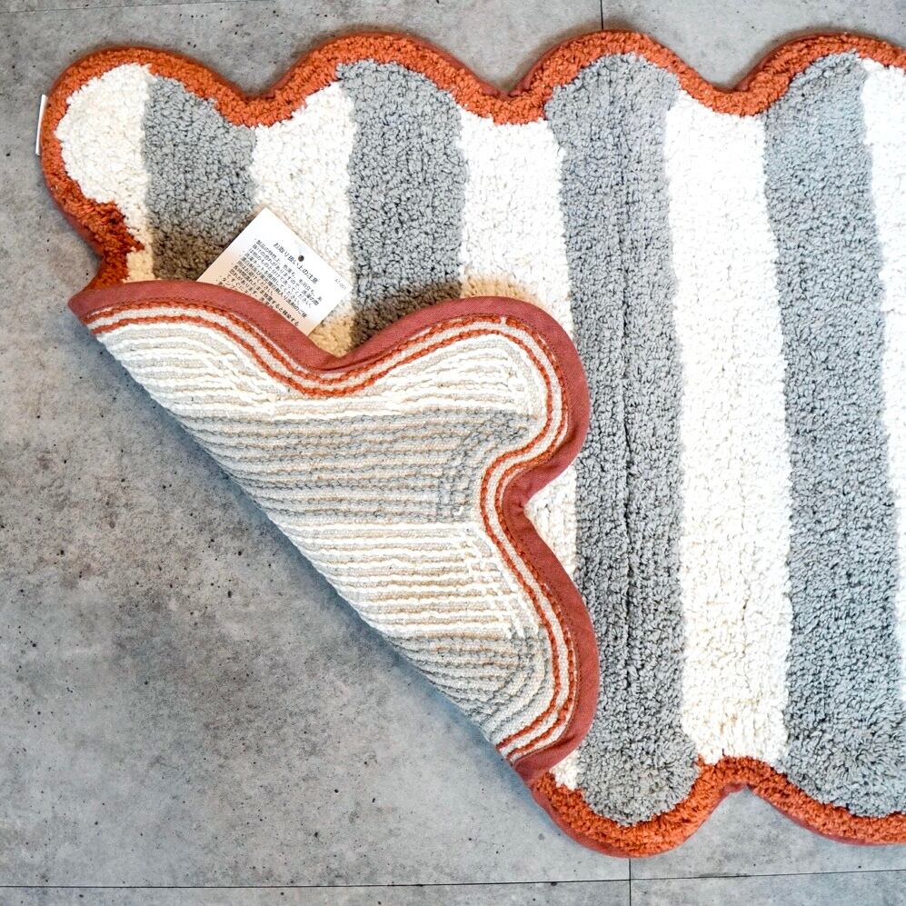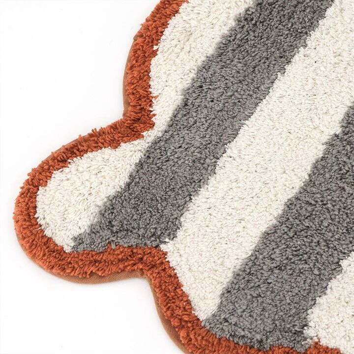 スカラップ調の波打つ縁取りと、コントラストの効いた配色が目を引くデザインマット。