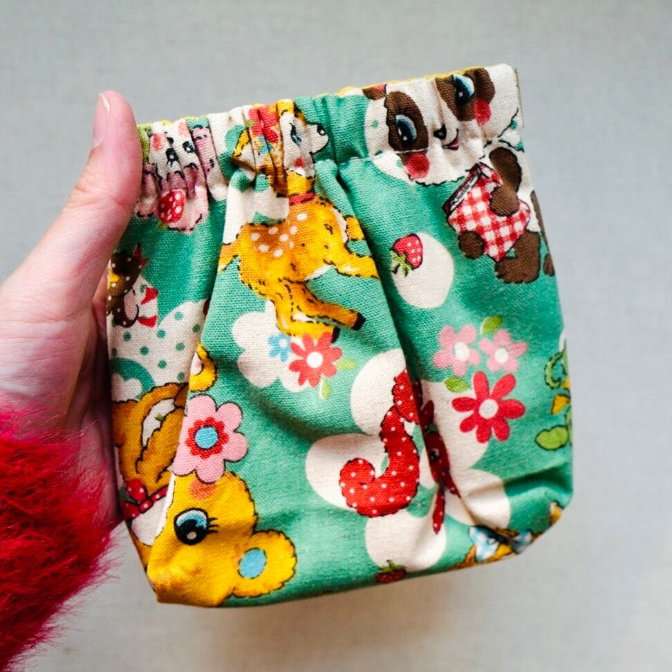 ハンドメイドバネポーチ 昭和レトロアニマル グリーン【maimikku】