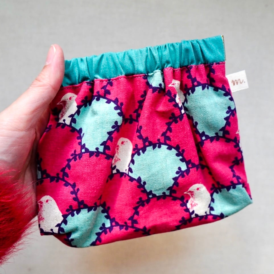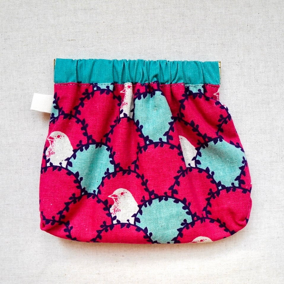 ハンドメイド バネポーチ とりピンク【maimikku】