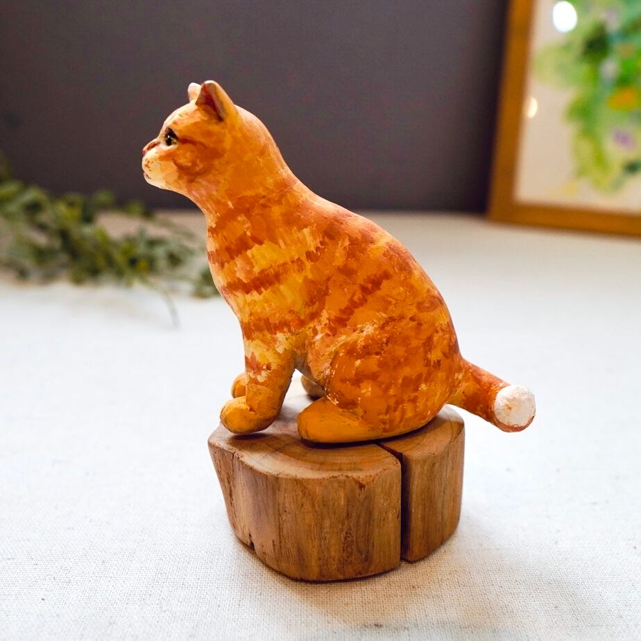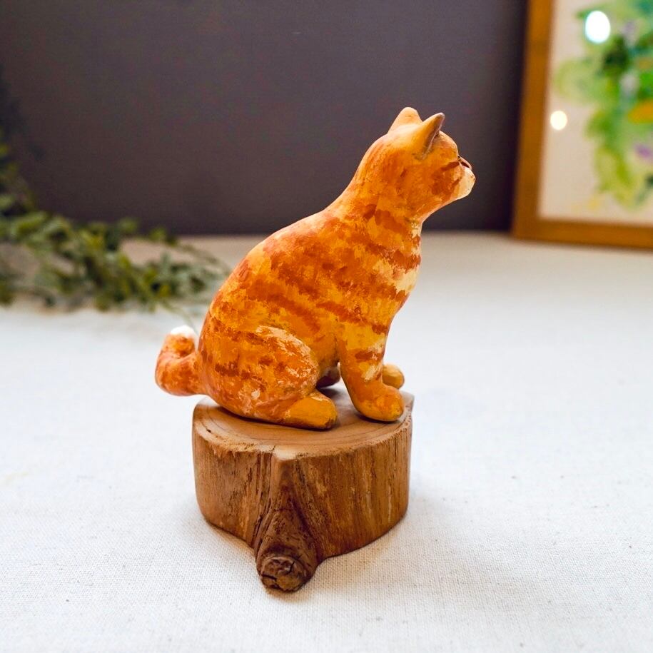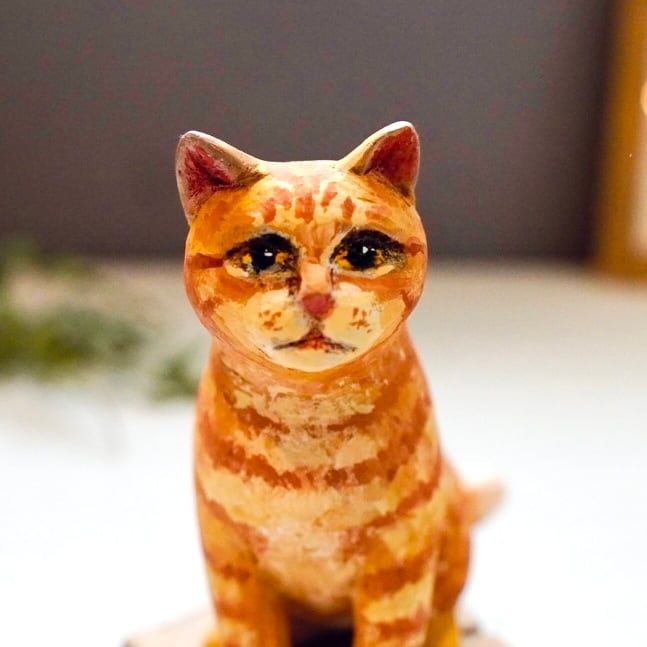 ひとつひとつ手作業で彫り上げた、木のぬくもりを感じる木彫りの猫です。